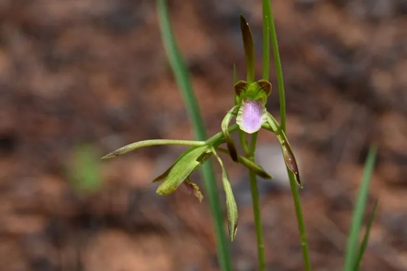 此次在元江河谷发现的单花美冠兰居群,其种群数量约50株,生长于海拔1120米的云南松林下贫瘠黄红壤或石砾缝隙中,长势较为良好,但开花植株较少。通过对比模式标本和原始文献,科研人员发现,单花美冠兰虽名为“单花”,但健壮个体可开2至3朵花,叶片长度与宽度也有一定变异幅度。